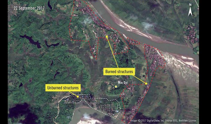 “Amnesty International believes, based on consistent, corroborating witness accounts, that soldiers massacred at least scores of Rohingya women, men, and children from Min Gyi on 30 August,” the Amnesty report concludes. Min Gyi is another name for Tula Toli. Amnesty also released satellite images showing the village before and after the houses were burnt.